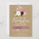 Enamórate de estas invitaciones rústicas y elegantes para baby shower de otoño. El diseño cuenta con una calabaza de acuarela rosa adornada con flores burdeos y marfil y follaje verde sobre un fondo kraft. "Una pequeña calabaza está en camino" aparece en la parte superior en letras de caligrafía chic. Personaliza con los detalles de tu baby shower y registro debajo en letras blancas. Las tarjetas se revierten a burdeos marsala sólido.