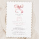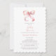 Abraza la llegada de un pequeño precioso con nuestra elegante invitación para baby shower en rosa pastel y blanco. Con una delicada cinta rosa coquette en la parte superior, este diseño atemporal muestra una caligrafía rosa y gris elegante para presentar los detalles del evento. La parte posterior es de un blanco crujiente. La muestra está terminada con el borde de elección escalopado para acentuar la apariencia, pero puede ser cambiada a cualquier otro acabado de su elección al ordenar.