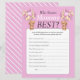 Tarjeta de juego de preguntas con acuarela para combinar con la colección de tu chupinada de bebé niña.