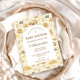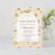 Un dulce diseño de safari de estilo cuento de hadas que presenta suaves animales bebé de acuarela, incluyendo leones, jirafas y elefantes rodeados de suave vegetación de la jungla y un delicado fondo botánico. La paleta cálida y neutral de crema, oro miel y suave oliva crea una estética atemporal inspirada en la naturaleza, mientras que la elegante disposición en forma de arco proporciona un hermoso espacio para los detalles del evento.