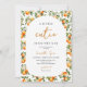 Celebra a tu pequeño en camino con esta invitación de Chupito de bebé neutral en cuanto al género. Esta invitación está llena de vibraciones frescas y afrutadas, con naranjas de acuarela, vegetación suave y un diseño moderno neutral en cuanto al género que es tan dulce como tu llegada próxima. Perfecta para chupitos de bebé de verano, esta invitación establece el tono para una reunión brillante y alegre llena de sol y sonrisas. BBS680