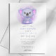 Invitación Chupito de Koala Morado Dulce y Caprichoso para Ba