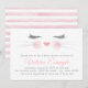 Invitación de baby shower de gatito con adorable cara de gatito de acuarela en un fondo de rayas rosadas y blancas. Estas invitaciones de baby shower de gato se personalizan fácilmente para su evento simplemente agregando sus detalles.