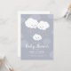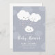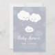 Personaliza esta elegante invitación de Baby Shower de parejas modernas con una familia de nubes lindas con tres nubes blancas: papá, mamá y una bebé donde los orgullosos padres están bañando a su bebé con una lluvia de corazones rosas en un cálido cielo gris.