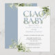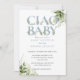 Invitación Ciao Baby Dusty Blue Greenery Carta Baby Shower