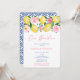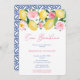 ¡Ciao Bambina! ¡Una niña está en camino! Celebre con esta bonito y las invitaciones de moda con limones acuarelas vibrantes y hojas de color verde brillante con rosas de acuarela rosa bonito y peonías, complementadas con el reverso de baldosas cobálticas y blancas. (Para una redacción distinta de "Ciao Bambina", por favor envíeme un correo electrónico).