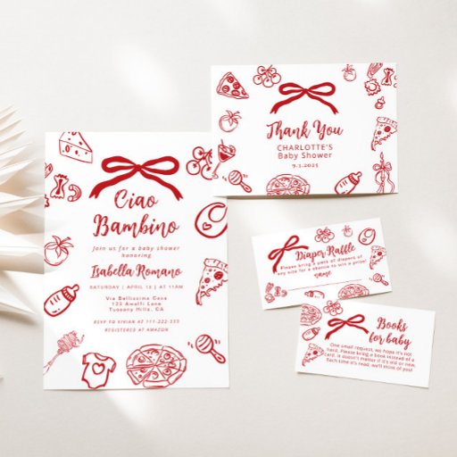 Ciao Bambino Italian Hand drawn Pizza Baby shower Invitation