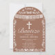 Perfect for Latino Catholic families wanting a modern, arch-shaped, and culturally rich invitation for their little boy's sacred bautizo!
