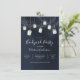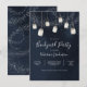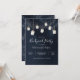 Invitaciones de fiesta en el jardín con tarros de mason colgantes con velas bajo un cielo nocturno lleno de estrellas celestes. ¡Genial para una graduación, jubilación, cumpleaños, ducha, fiesta de compromiso o cualquier fiesta al aire libre en el jardín! Fondo de acuarela azul oscuro de medianoche con estrellas dispersas.