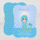 Invitación de cumpleaños 7 de princesa celestial linda con patrón de estrellas en el reverso. Todos los textos y números están listos para ser personalizados para otras edades también.