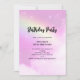 Una invitación de cumpleaños con un bonito fondo. Un cielo rosa pastel con nubes esponjosas y un arcoiris de color limón. Diseño mágico y caprichoso.
