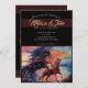 Pintura romántica de caballos corriendo a través de una playa al atardecer, perfecta para invitaciones de boda elegantes. ¡Personaliza la tuya para dar un toque elegante y personal a tu evento especial!
