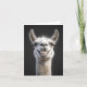 Un acercamiento muy detallado de una llama blanca sonriente con ojos expresivos y una expresión cómica y amigable en un entorno oscuro.