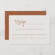 Esta tarjeta de respuesta de boda presenta una fuente manuscrita con estilo y un diseño minimalista moderno. Su esquema de color naranja quemado y beige de tono terroso bohemio la convierte en la tarjeta de respuesta perfecta para su suite de boda contemporánea o industrial. La mayoría de los textos son editables y esta tarjeta de respuesta se puede utilizar para cualquier ocasión. Úselo fácilmente para su ducha de novia, ducha de bebé, fiesta de jubilación, etc.