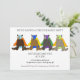 Esta divertida invitación es perfecta para hacer un fiesta Cinco De Mayo u otras celebraciones de temática mexicana. Estas invitaciones incluyen ilustraciones de osos vestidos con trajes de luchador o trajes mexicanos proluchadores con máscaras, gorros y cortos de colores vivos. Todo el texto de esta invitación está listo para su toque personalizado para que pueda utilizar estas invitaciones planas para cualquier celebración. El lado inverso tiene un divertido y festivo patrón de estrellas naranjas contra un fondo azul claro.