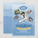 Esta moderna y elegante invitación a graduarse incluye una letra manuscrita de "Graduado", un gran desplazamiento de diplomas y cinco fotos de tus propios graduados, todo con un fondo acuarela texturizado en tonos azules. Agregue los detalles del evento de celebración utilizando la plantilla proporcionada.