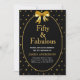Cincuenta y fabuloso con el patrón de estrella dorada en la invitación del partido negro.