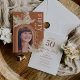 Cumplir 50 años merece una celebración tan única como la cumpleañera. Nuestras invitaciones rústicas bohemias marcan el tono, con un vibrante fondo naranja, arco de arcoíris, foto personalizada y acentos chic del desierto. Fáciles de personalizar y perfectas para crear recuerdos inolvidables.