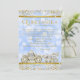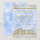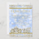 Invitación de Princesa Quinceañera con hermoso caballo y carruaje de diamantes dorados sobre un fondo azul Cenicienta con brillo de diamantes y destellos dorados. Esta hermosa invitación de Princesa Quinceañera de cuento de hadas se personaliza fácilmente para su evento simplemente agregando sus detalles en el estilo de fuente y redacción de su elección. Este es un diseño impreso sin diamantes reales, brillo, etc.