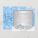 Invitación Quinceañera Cinderella azul y plata con hermoso caballo y carruaje plateado y azul sobre un fondo de bokeh azul y destellos de diamantes. Esta hermosa invitación de princesa de cuento de hadas Quinceañera se personaliza fácilmente para su evento simplemente agregando sus datos en el estilo de fuente y redacción de su elección. Este es un diseño impreso sin diamantes reales, purpurina, plumas, etc.