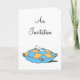 Elegantes tarjetas de invitación personalizables con arte vintage de la zapatilla de cristal de Cenicienta en una almohada azul naranja y azul teñido con letras script que pueden ser personalizadas por usted el interior de esta tarjeta está forrado en naranja a juego.
