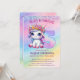 ¡Celebra con estilo esta invitación de 5 años con temática de unicornio! Con un diseño colorido y purpurinoso y todos los detalles importantes del fiesta, es perfecto para una celebración mágica. En la parte trasera, los clientes encontrarán una sorpresa divertida: una bonita página de color de unicornio para mantener a los pequeños ocupados y entusiasmados con el fiesta.