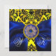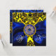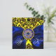 INVITACIÓN CINTA AZUL ORO AMARILLO NEGRO DAMASCO MONOGRAMA