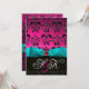 Invitación CINTA AZUL ROSADO FUCsia NEGRO MONOGRAMA DAMASCO