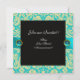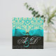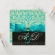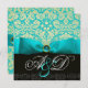 INVITACIÓN CINTA AZUL TURQUESA BLANCO NEGRO DAMASCO MONOGRAMA