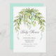 cintas de satén azul bonito con vegetación. Recorte de Aqua y vuelta de la invitación. Una acuarela elegante. Absolutamente impresionante. Aqua para el bebé.