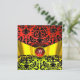 INVITACIÓN CINTA DE ORO AMARILLO ROJO NEGRO DAMASCO MONOGRAMA