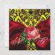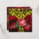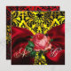 INVITACIÓN CINTA DE ROSA ROJA DAMASCO MONOGRAMA NEGRO AMARILL