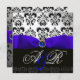 INVITACIÓN CINTA DE ZAFIRO AZUL DAMASCO MONOGRAMA BLANCO NEGR