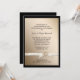 Aquí hay una invitación simple, pero elegante y distinguida para la celebración del aniversario de bodas de oro en oro con borde negro. Una imagen de cinta de satén blanco falso está atada en la parte inferior con una imagen de anillo de oro. Su texto personalizado está en negro, y hay mucho espacio. La parte trasera de la invitación es negra. ¡Distinguido! *Tenga en cuenta que la imagen está impresa, y no contiene metal ni cinta. Esta invitación es lo suficientemente versátil como para ser adaptada a cualquier ocasión formal.