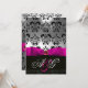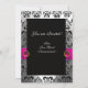 INVITACIÓN CINTA FUCHSIA ROSA BLANCO NEGRO MONOGRAMA DAMASCO