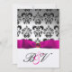 INVITACIÓN CINTA FUCHSIA ROSA MONOGRAMA DAMASCO NEGRO PLATA