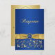 Esta elegante tarjeta de respuesta de aniversario de bodas de sesenta años con flores azules zafiro y doradas con volutas tiene una cinta y un lazo dorados IMPRESOS con un medallón naval y dorado con apariencia de grabado FAUX IMPRESO. Puede eliminar el texto estilizado en cursiva "Respuesta" o "60º". Todo el texto es personalizable, y también las opciones de papel. ***POR FAVOR TOME NOTA de que para obtener los mejores resultados impresos para los elementos "dorados", sugiero el papel con brillo perla. Los papeles de acabado mate no tendrán brillo y pueden hacer que las cosas se vean más opacas de lo que aparecen en línea. Esta tarjeta de RSVP está diseñada para ajustarse a la tarjeta de tamaño 3.5x5. Si cambia a otro tamaño o forma, el diseño ya no se ajustará correctamente, así que si desea un tamaño diferente, por favor contácteme para que pueda rediseñarlo para usted. TAMBIÉN, si cambia las fuentes o tamaños de fuente, su texto puede no ajustarse correctamente. Zazzle no editará nada por errores tipográficos, alineación o cualquier otra cosa, y no veré su pedido. Todo se imprimirá tal como aparece en su monitor. Si necesita ayuda con la tarjeta, por favor contácteme ANTES de