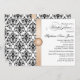 © 2013 Socialite Designs. Nuestro color de perla envejecida (marrón rosa claro - sepia), con damasco blanco y negro, invitación a la ducha de novia tiene un diseño falso de cinta y broche / botón. Todos los elementos de diseño y texto son personalizable. Si necesita productos bodas adicionales que coincidan, como tarjetas de agradecimiento, no dude en ponerse en contacto con Socialite Designs. POR FAVOR, TENGA EN CUENTA QUE EL BOTÓN RIBBON Y JEWEL SON IMÁGENES E IMPRESAS EN LA INVITACIÓN. La imagen de texto del guión sofisticado "Bridal Shower" puede ser movida, redimensionada o borrada.