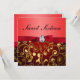 Invitación Cinta Roja Cute Oro Patrón Floral Dulce Dieciséis