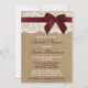 Esta rústica cinta roja con invitaciones para el arco, el kraft y la ducha de novias de encaje hará la invitación perfecta para cualquier futura novia. El diseño presenta un bonito efecto kraft rústico con un romántico efecto de encaje blanco vintage y un impresionante cordón rojo con arco. Estas invitaciones pueden ser personalizadas para su ocasión especial y harían la invitación perfecta para cualquier boda rústico, ducha de novia, fiesta de compromiso, fiesta de cumpleaños y mucho, mucho más. *Tenga en cuenta que Zazzle sólo vende invitaciones impresas para que estas invitaciones no tengan ningún material de encaje, arco o cinta.