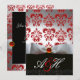 Invitación CINTA ROJA PLATA Y MONOGRAMA DE DAMASCO NEGRO Rubí