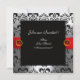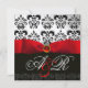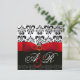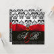 INVITACIÓN CINTA ROJA RUBÍ BLANCO NEGRO  DAMASCO MONOGRAMA
