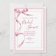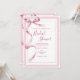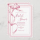 Colores de color rosa y blanco adornando esta encantadora invitación a la ducha de novia. Perfectamente enmarcado con un borde blanco de vieira. Las fuentes de coordenadas añaden a la belleza de este diseño.