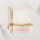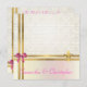 Invitación Cinta rosada y dorada pasteles con damasco blanco