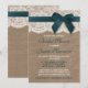 Esta rústica cinta verde azulada con invitaciones de arco, burlap y ducha de novias de encaje hará de la invitación perfecta para cualquier futura novia. El diseño presenta un bonito fondo rústico con efecto burlap y un romántico efecto de encaje blanco vintage con una impresionante cinta verde azulada con arco. Estas invitaciones pueden ser personalizadas para su ocasión especial y harían la invitación perfecta para cualquier boda rústico, ducha de novia, fiesta de compromiso, fiesta de cumpleaños y mucho, mucho más. *Tenga en cuenta que Zazzle sólo vende invitaciones impresas para que estas invitaciones no tengan ningún material real de color burlap, encaje, arco o cinta.