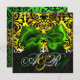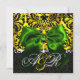 INVITACIÓN CINTA VERDE ORO AMARILLO NEGRO MONOGRAMA DAMASCO