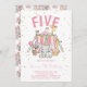 Invitación Círculo de Carnaval Rosa 5 cumpleaños