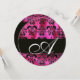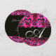 Invitación CÍRCULO MONOGRAMA DE TELA DAMASCO NEGRO ROSA FUCsi