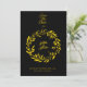 Anuncie su gran día con estilo con esta sofisticada invitación de bodas en negro y oro "Save the Date" que presenta un diseño de laurel de círculo refinado. El fondo negro atemporal contrasta maravillosamente con el clásico texto dorado y la corona laurel, ofreciendo un elegante adelanto de su ocasión especial. Ideal para bodas formales o de corbata negra, esta invitación es totalmente personalizable, lo que le permite adaptar los nombres, fechas y detalles del lugar a su celebración única. Perfecto para parejas que valoran el lujo y la sencillez, esto ahorra la tarjeta de fecha para garantizar que su invitación boda deja una impresión duradera.