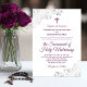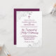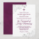 Esta hermosa invitación de boda es perfecta para una ceremonia católica moderna. Cuenta con un hermoso diseño con elegante letra de script de color cassis púrpura, magenta o bayas y rizados y florituras de falso foil gris plateado ornado en las esquinas sobre un fondo blanco clásico. Incluye una cruz o crucifijo, y la redacción que invita a sus invitados a asistir a una misa nupcial que une a la pareja en el sacramento del santo matrimonio. Esta invitación es la combinación perfecta de tradición formal y estilo moderno, lo que la convierte en una forma maravillosa de invitar a sus amigos y familiares a compartir su alegría en su día especial.